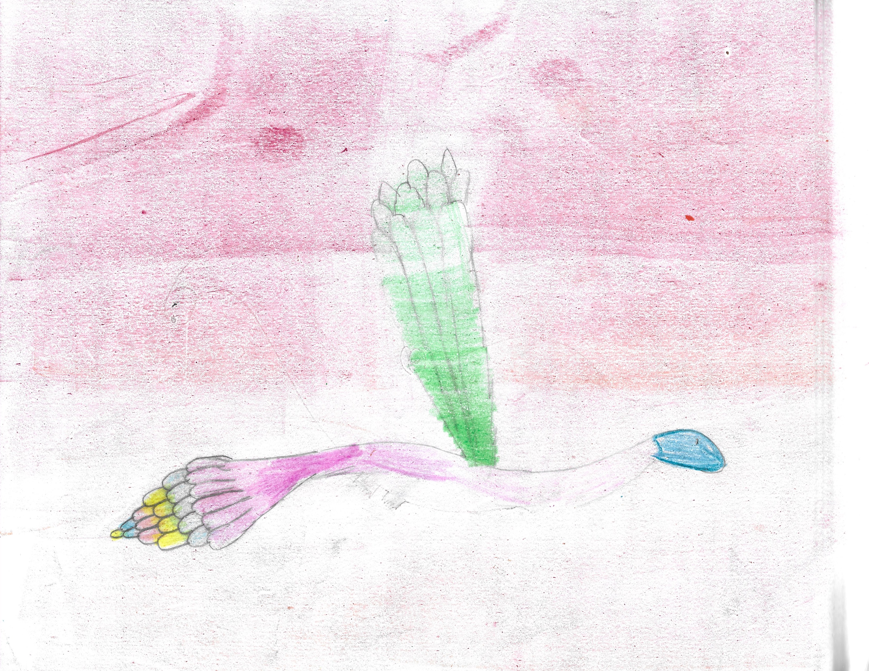 Tontails have a ton of tails. The number of tail depend on how old they are. The one in the illustration is eleven years old. The tail starts growing in the beginning of the year and finishes growing at their birthday. Tontails have crescent shaped wings and small arms. The color of the tail is up to chance and genes. The body and wing depend on the gender.