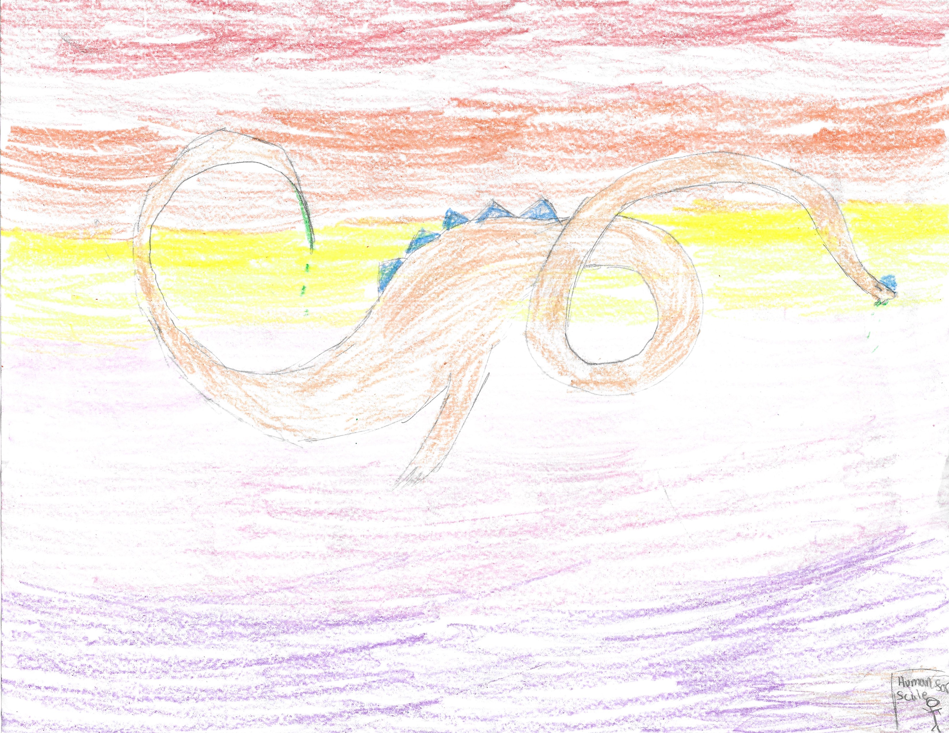 This Mythocreature has a super long neck. They have blue spikes that climb up their neck. But Longnecksons have venomous fangs and tails. They are extremely dangerous. Back when humans and Mythocreatures still got along, humans made sure to avoid Longnecksons. Children have no venom and need their parents to protect them.